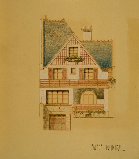 Projet de villa n°8, élévation façade principale.Immatriculation