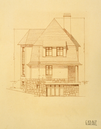 Projet de villa n°7, lot 23, élévation de la façade, garage.Immatriculation