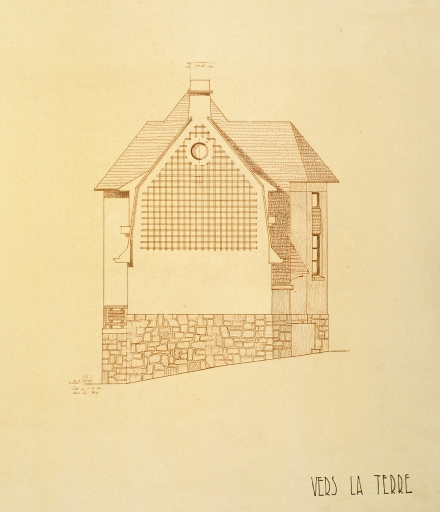 Projet de villa n°7, lot 23, élévation de la façade vers la terre.Immatriculation