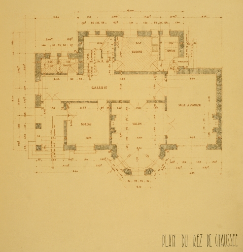 Projet de villa, variation du type A, rez-de-chaussée.Immatriculation