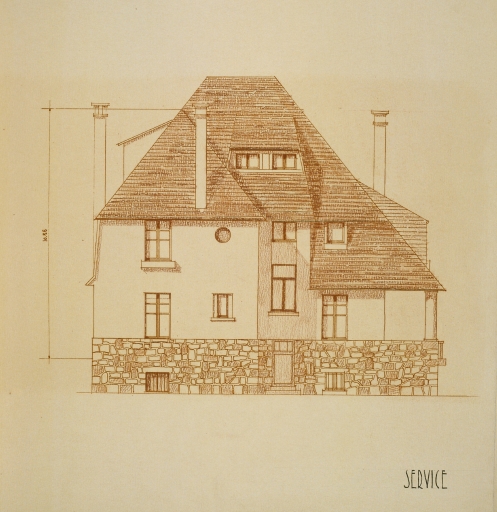 Projet de villa n°3, service, élévation de façade.Immatriculation