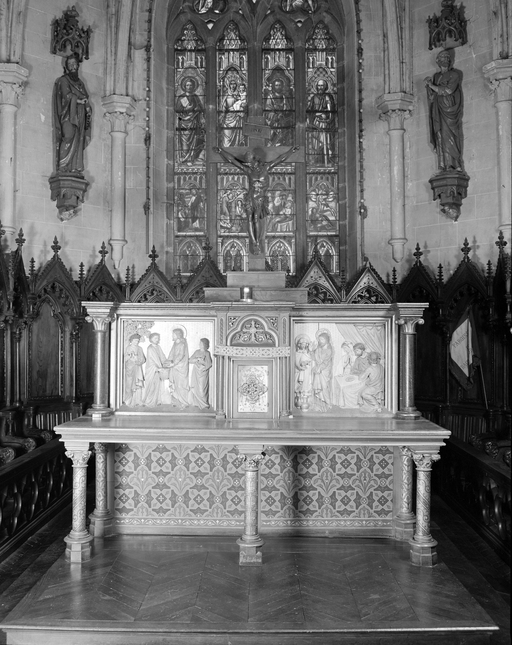 Ensemble du maître-autel (autel, retable, tabernacle, 3 degrés) : Multiplication des pains, Noces de Cana,