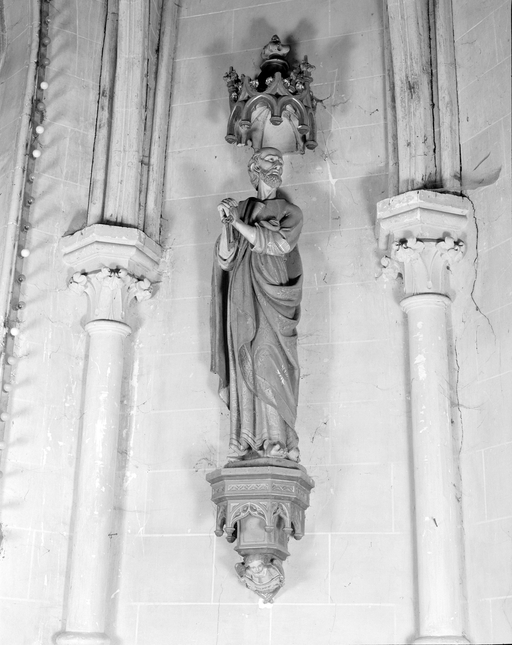 Statue, socle, dais (grandeur nature) : saint Pierre,