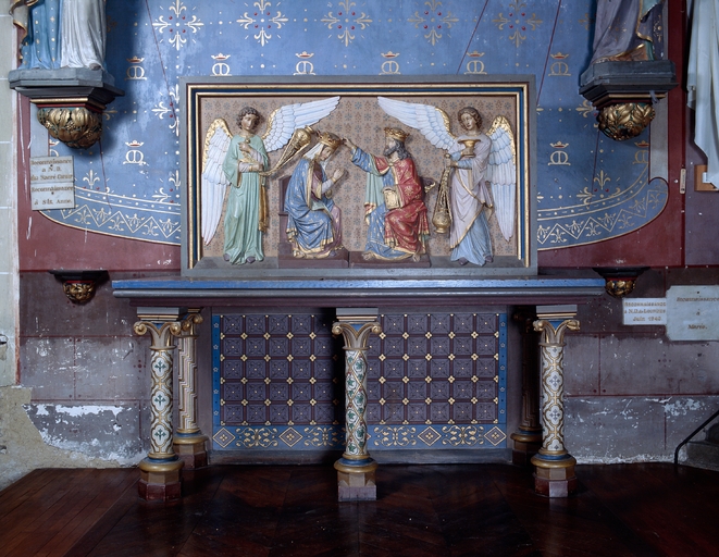 Ensemble de l'autel de la Vierge (autel, retable, degré, peinture monumentale) : Couronnement de la Vierge,