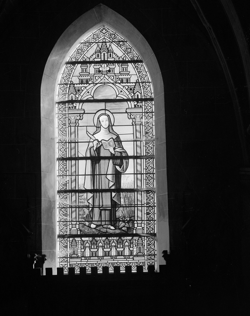 Verrière de la baie 8 (verrière à personnages) : sainte Thérèse d'Avila (?),