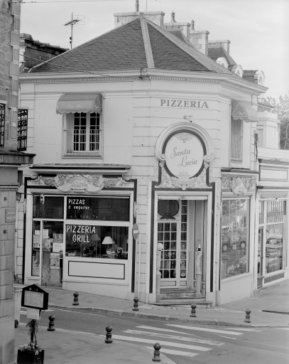 Vue générale de l'immeuble commercial ancienne bijouterie Van Cleef, actuellement Pizzeria Santa Lucia.Immatriculation