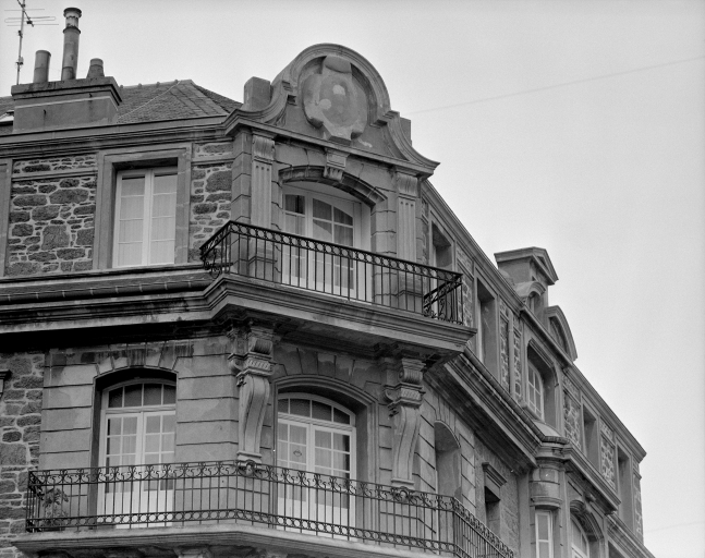 Détail de l'immeuble avec partie commerciale rue du Maréchal Leclerc et de la rue Levavasseur.Immatriculation
