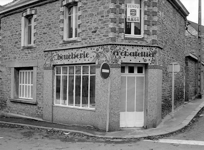 Vue générale de l'immeuble avec partie commerciale rez-de-chaussée de l'ancienne boucherie A. Chatellier.Immatriculation