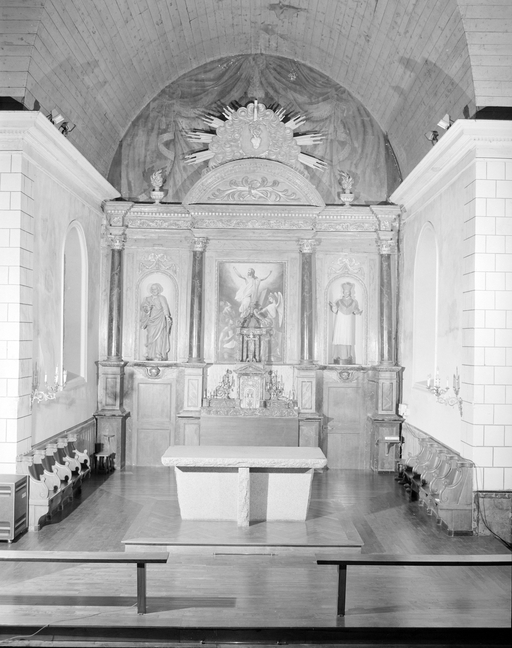 Ensemble du maître-autel (autel, retable, tabernacle, 2 gradins, exposition, degré, peinture monumentale),