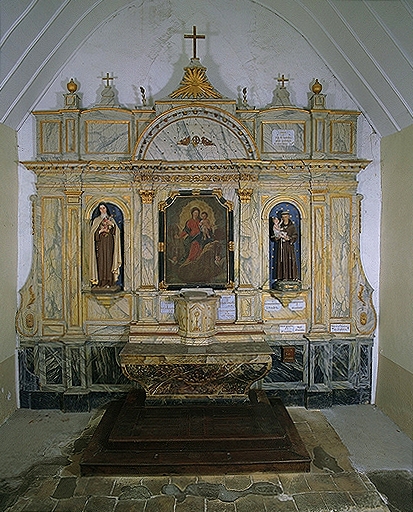 Ensemble de l'autel du Rosaire (autel, 2 gradins, retable, tabernacle, degré),