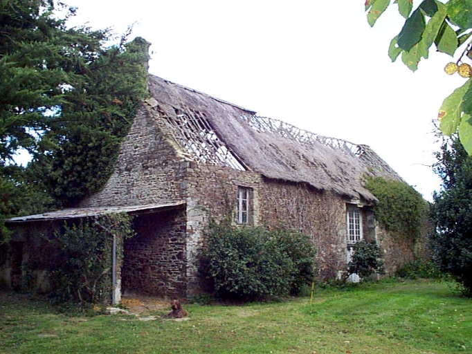 Vue sud-ouest de l'ancienne grange couverte en chaumeImmatriculation
