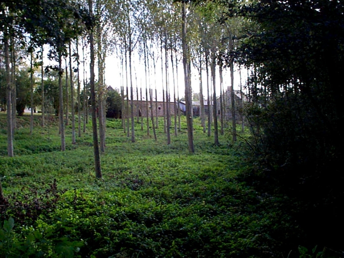 Vue de l'étang comblé depuis le nord avec les vestiges du manoir au second planImmatriculation