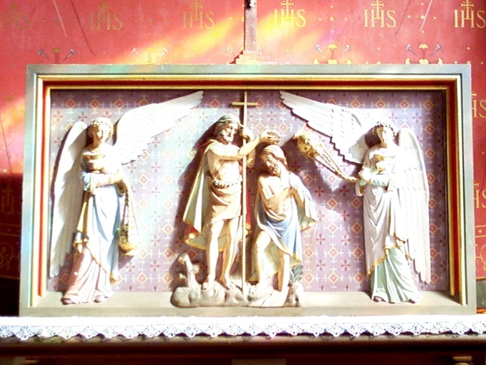 Ensemble de l'autel de saint Jean-Baptiste (autel, retable, degré, peinture monumentale) : Baptême du Christ,