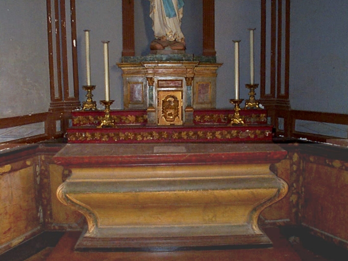 Ensemble de l'autel de la Vierge (autel, tabernacle, 2 gradins, tableau),