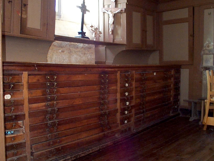 Ensemble de mobilier de sacristie : chasublier, 4 armoires de sacristie,