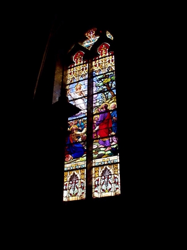 Verrière de la baie 2 (verrière à personnages, vitrail tableau) : Ascension,