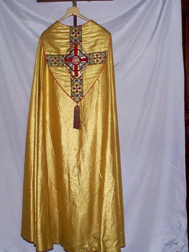 Ornement doré 3 : chape, bourse de corporal, étole, manipule,