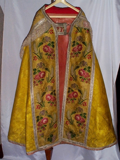 Ornement doré 2 : chasuble, bourse de corporal, manipule, chape,