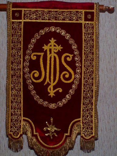 Bannière de procession : Sacré Coeur, IHS,