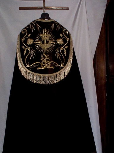 Ornement noir 3 : chasuble, bourse de corporal, étole, manipule, voile de calice, chape,