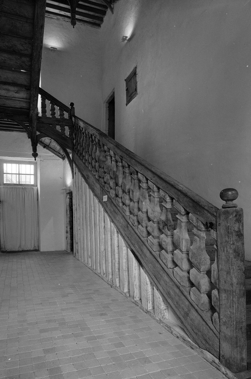 Escalier de distribution, vue à partir du rez-de-chaussée.Immatriculation