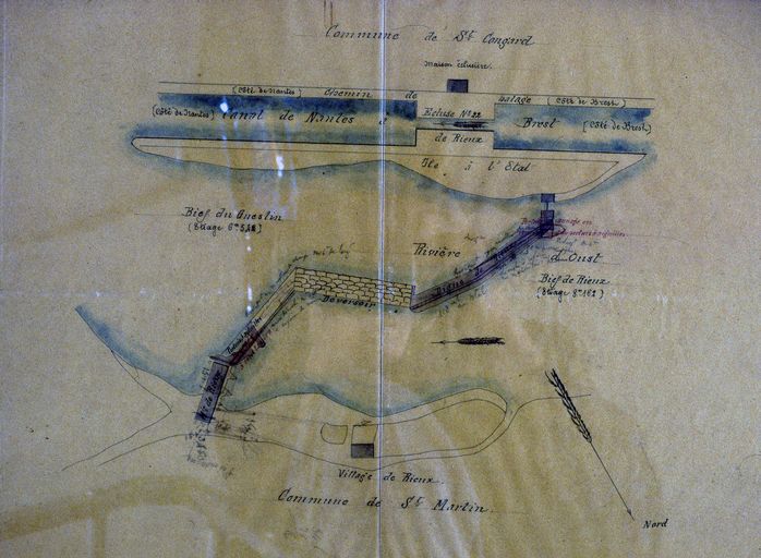 Site d'écluse 22, construction d'un pertuis à vannage, 1904 : le déversoir (D. D. E. Morbihan, Pontivy)Immatriculation
