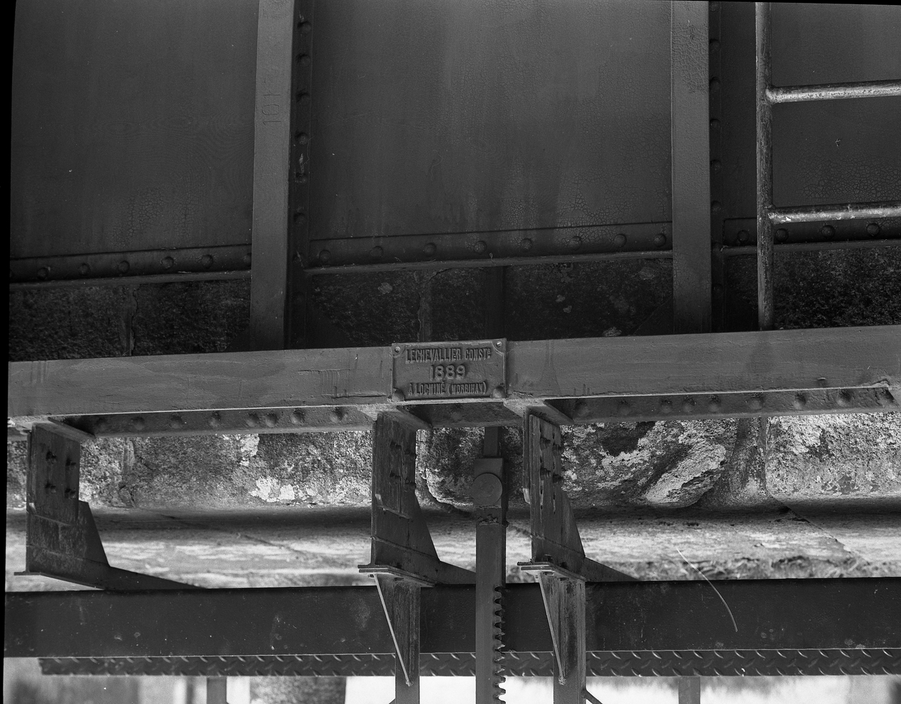 Plaque de constructeur remontée à l'envers sur la porte éclusièreImmatriculation
