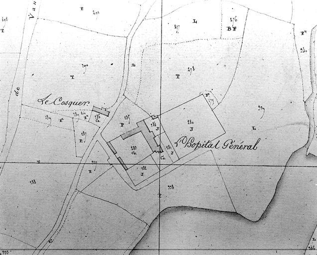 Plan cadastral 1807-1809. Section B2 : l'hôpital général. AM Vannes 21Fi.Immatriculation