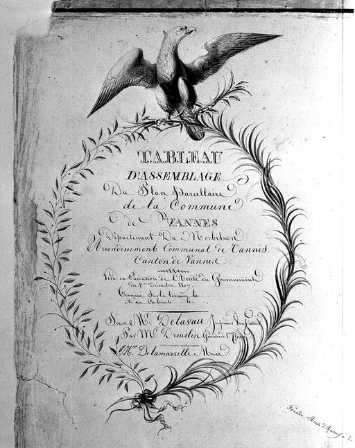 Plan cadastral 1807-1809. Tableau d'assemblage général : détail de la vignette. AM Vannes 21Fi.Immatriculation