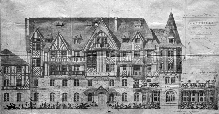 Hôtel de voyageurs, dit Hôtel de la Mer, puis Grand-Hôtel de la Plage, enfin Grand-Hôtel-école ar Vro, actuellement immeuble, rue d'Ar-Vro, la Garde (Saint-Cast-le-Guildo),