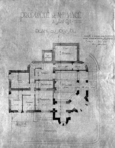 Plan du sous-sol, par Eugène Olichon, 1925 (A. P.).Immatriculation