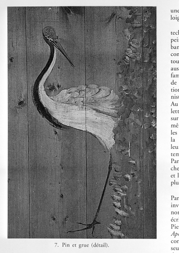 Pavillon logement, vue intérieure, fresque et détail pin et grue.Immatriculation