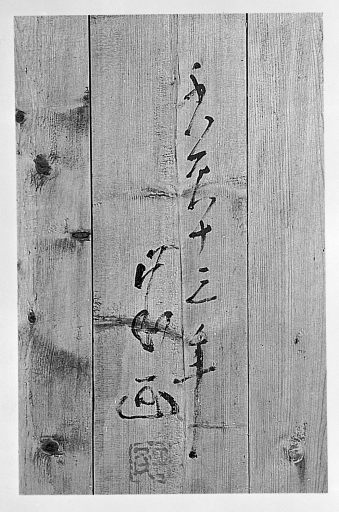 Pavillon logement, vue intérieure, fresque avec signature et cachet du peintre.Immatriculation