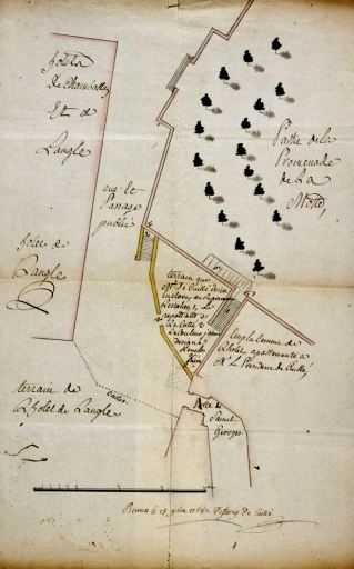 Plan de l'emplacement des hôtels et terrains entre la porte Saint-Georges et la promenade de la Motte, dessin, 1765 (AC Rennes)Immatriculation