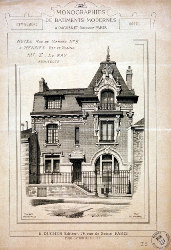 Vue générale, publiée dans Monographies de bâtiments modernes, 11e année, A. Raguenet, 1902-1903 (A. C. Rennes).Immatriculation