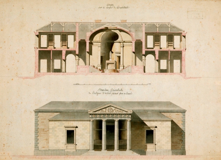 Amphithéâtre projeté rue de la Santé. Coupe et élévation du portique d'entrée (A. C. Rennes : 2 Fi 54)Immatriculation