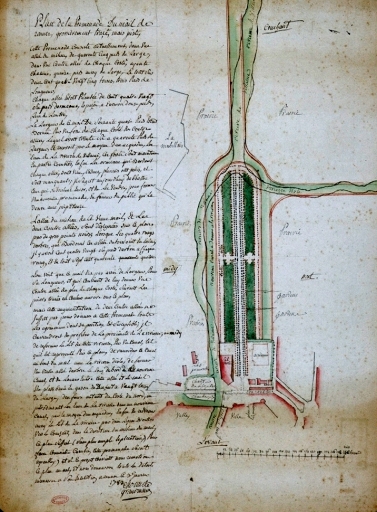 Plan de la promenade du Mail de Rennes, dessin par Chocat de Grandmaison, 1783 (A. C. Rennes).Immatriculation