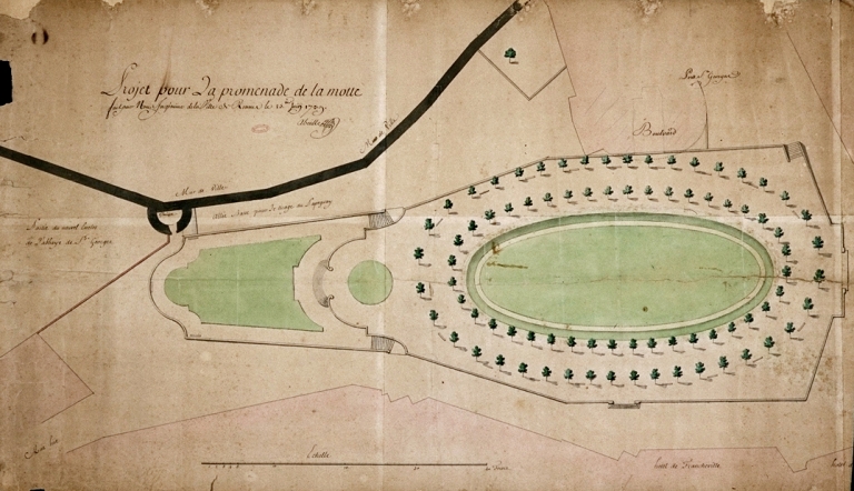 Projet pour la promenade de la Motte, dessin par Abeille, ingénieur de la ville, 1739 (AC Rennes)Immatriculation