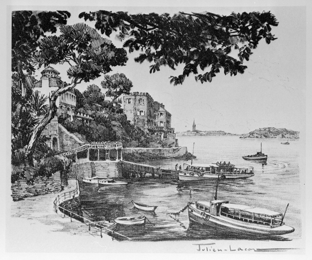 Julien Lacaze, la cale des vedettes vertes vers 1930 Lithographie, coll. Part.Immatriculation