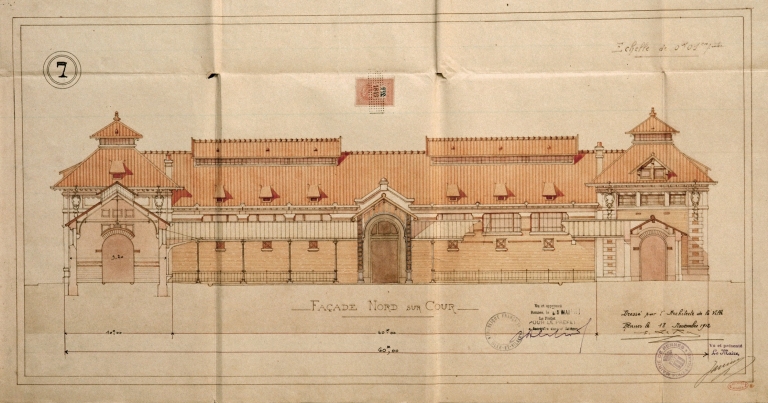 Halle centrale, façade nord sur cour, E. Le Ray, 1912 (A. C. Rennes ; 2 Fi 5020)Immatriculation