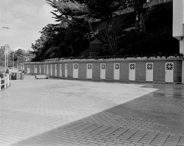 Plage de l'Ecluse, ensemble de cabines de bain, vue de la partie estImmatriculation