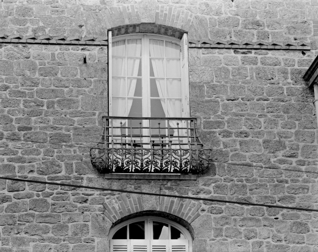 Détail balcon du rez-de-chausée sur façade arrière.Immatriculation