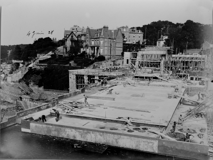 Photographie prise lors du chantier du casino, terrassement de la piscine, 4 juin 1928.Immatriculation