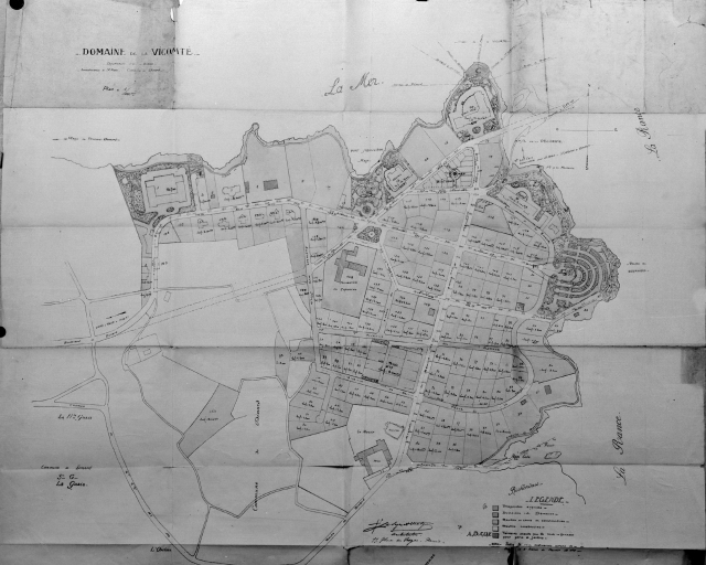 Domaine de Vicomté. Propriétés acquises. Divisions du domaine. Routes en cours de construction. Routes construites. Terrains acquis par la ville de Dinard pour parcs et jardins, vers 1928.Immatriculation