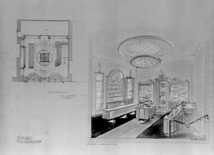 Magasin de M. derrien, plan au sol de la parfumerie (1949).Immatriculation
