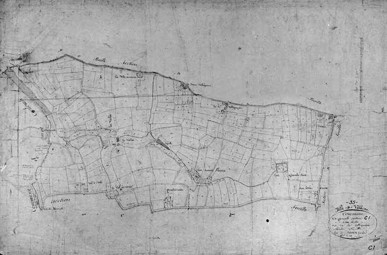 Les Grands Prés, les Douets Fleuris, la Vallée, le Val-ès-Cerfs (sic) sur le cadastre de 1828Immatriculation