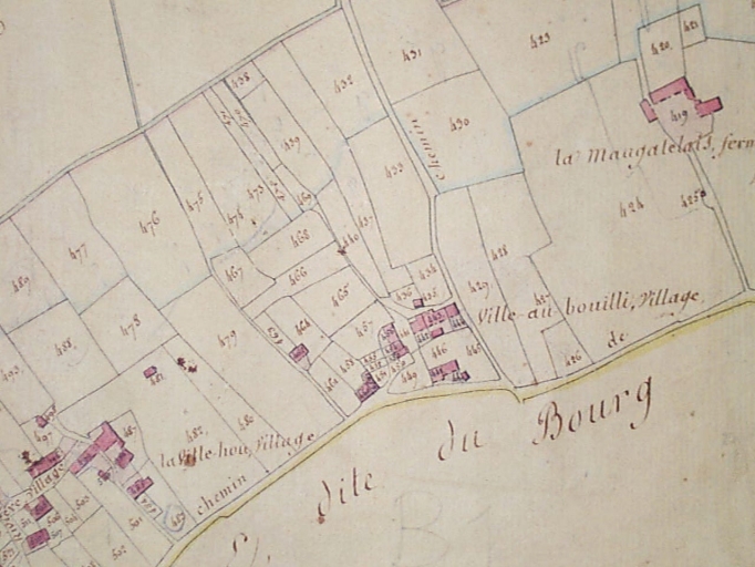 Plan de situation sur le cadastre de 1812 : au centre droit sur l'image, parcelles 443-444Immatriculation