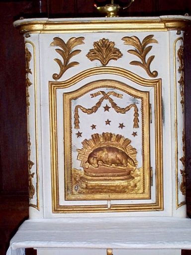 Ensemble du maître-autel (autel, tabernacle, exposition) : Vierge à l'Enfant : Translation de la Santa Casa à Lorette,