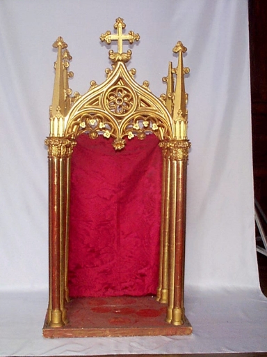 Ensemble du maître-autel (autel, tabernacle, exposition) : Vierge à l'Enfant : Translation de la Santa Casa à Lorette,