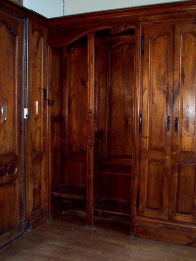 Ensemble de meubles de sacristie : chapier, lambris de hauteur, confessionnal, porte-chape,